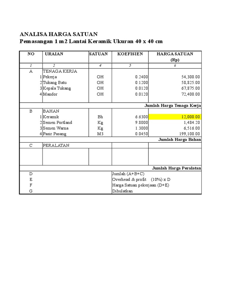 Analisa Keramik 40x40 Scribd