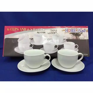 Cangkir piring set putih polos elegan homeline keramik Sumber : shopee.co.id